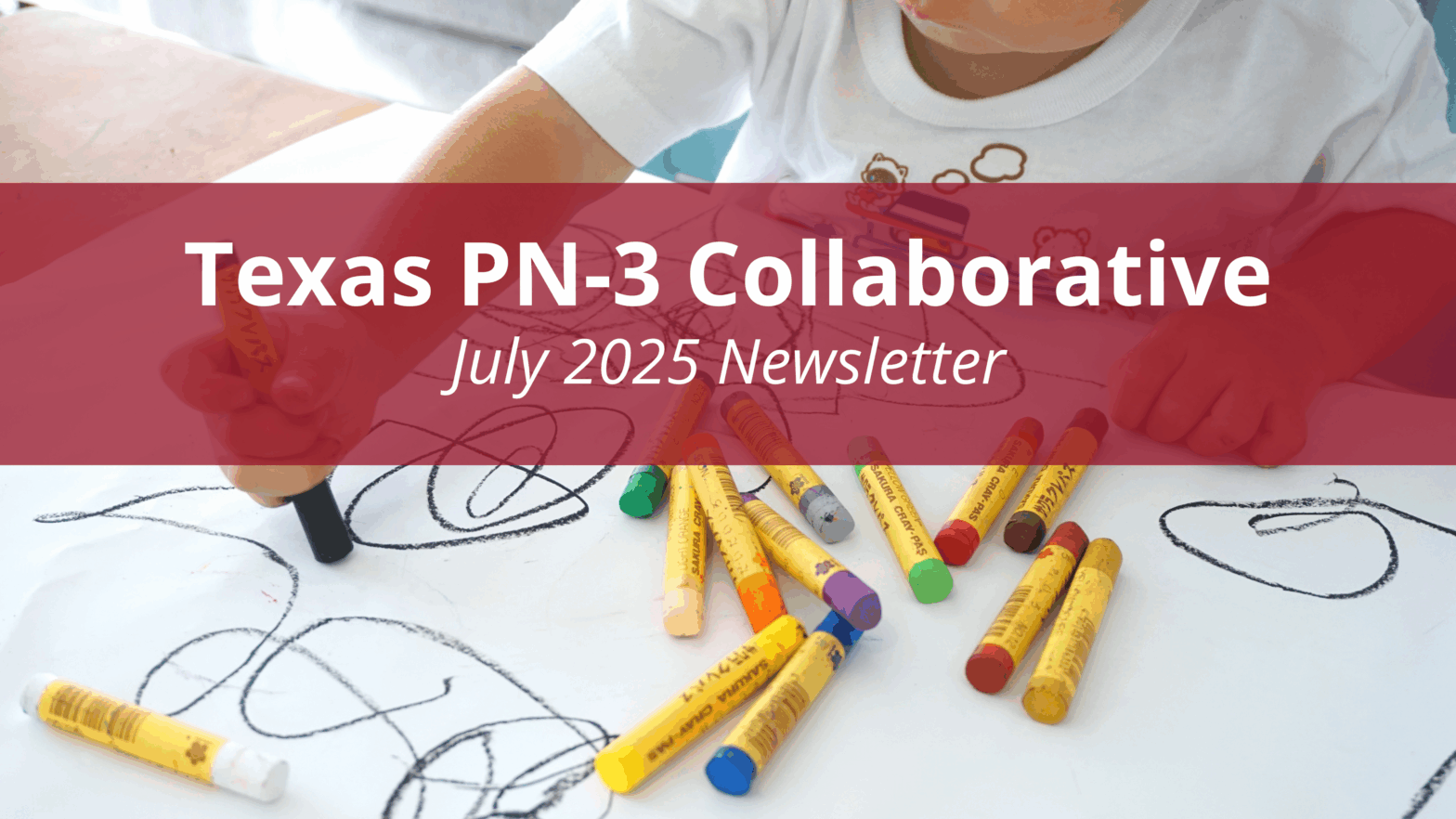 Texas PN-3 Newsletter Greetings PN-3 Collaborative, As we prepare for the 89th Legislative Session, our focus remains on advancing key advocacy priorities for Texas’ youngest children and families. We’re working diligently to ensure that these priorities are front and center in policy discussions, whether through testimony at interim hearings or direct engagement with legislators. OurContinue reading “September 2024”
